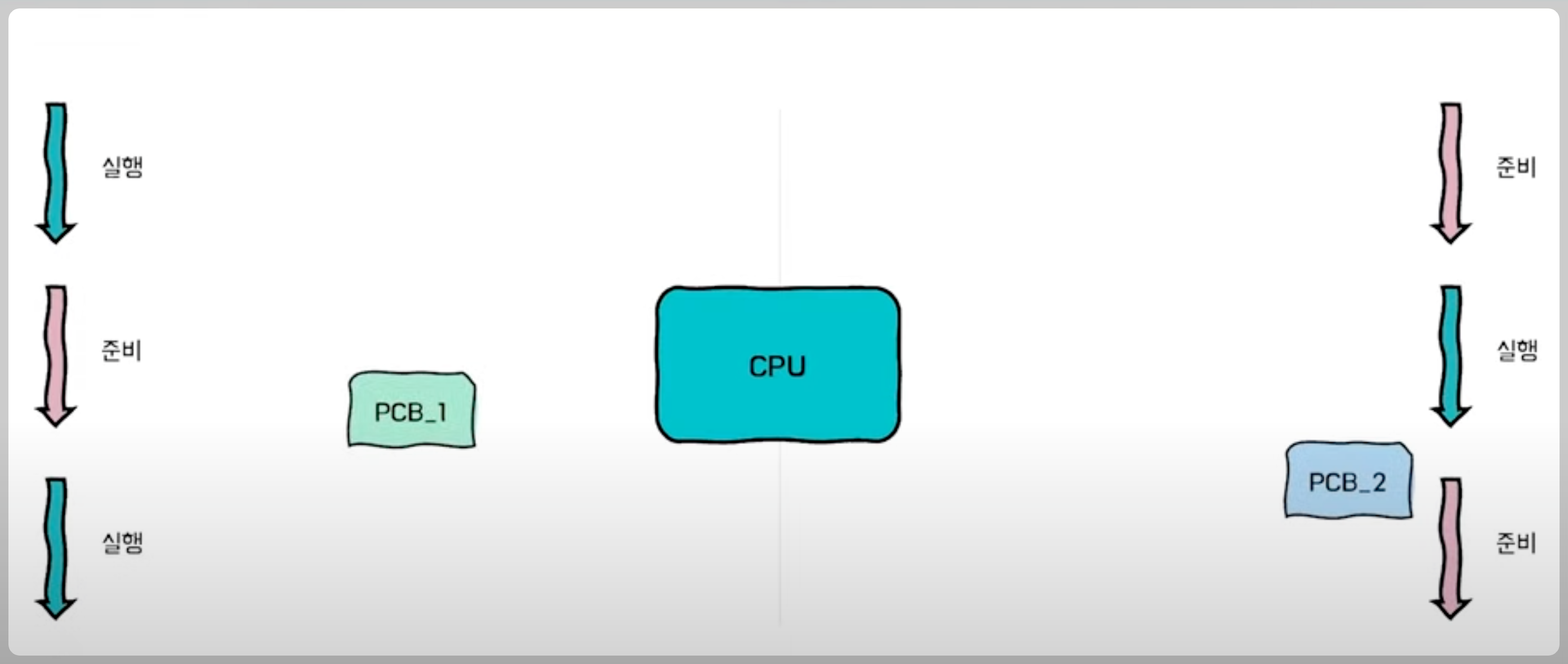 - 프로세스들을 ms 단위까지 잘게 쪼개서 여러 프로세스를 번갈아가며 실행 시키는 과정을 컨텍스트 스위칭이라고 한다.